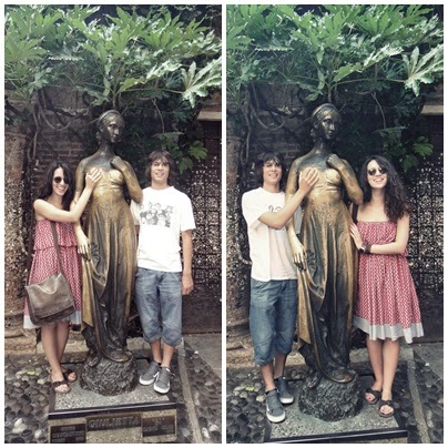 Prva postaja nam je Verona, grad u sjevernoj talijanskoj pokrajini Veneto, trgovačko središte i drugi najveći grad u regiji (iza Venecije), gdje smo stigli malo prije podne. Ono što definitivno dominira centrom Verone je Arena, izgrađena u 1. stoljeću. Po veličini je treća u svijetu, odmah nakon rimskog Koloseja i amfiteatra u Santa Maria Capua Vetere kod Napulja. Unutrašnjost, još uvijek gotovo netaknuta, nekada je mogla primiti skoro sve građane rimske Verone, a posjetitelji su iz cijelog Veneta dolazili na gladijatorske borbe. Danas se Arena koristi za predstave i sajmove. Svakodnevno je otvorena za javnost, tako da imate mogućnost istražiti njenu unutrašnjost, popeti se na njen vrh od kuda se pruža pogled na više-manje cijelu Veronu. Jasno, popeli smo se. Shvativši na našu žalost da nam je kondicija ravna nuli. Dvije, tri stepenice viška i svi umiremo i borimo se za dah. Osim Ume. Ona je nabrijana. Pod izlikom da si želimo predočiti nekadašnje gladijatorske igre i malo uživati u pogledu na Veronu, ostajemo gore neko vrijeme. Odmaramo. Ali ne zadugo jer nas ulice Verone čekaju, a Uma nervozno tapka nogom. Prvo što nam je na popisu nakon Arene je naravno Julijina kuća. Iako smo ju već vidjeli, koliko god puta čovjek posjetio Veronu, uvijek iznova mora posjetiti kuću koja je zapravo obnovljena gostionica iz 13. stoljeća. Hodajući prema kući, proći ćete ispod volte na čijim su zidovima ljudi diljem svijeta ispisivali ljubavne poruke svojim Julijama i Romeima. Iako je višegodišnje ispisivanje poruka jedne preko druge raznim flomasterima, markerima i kemijskama uzelo svoj danak i poruke su teško razumljive, ta činjenica ne umanjuje ljepotu i značaj ovih zidova. Nakon volte i ljubavnog zida, ulazite u dvorište Julijine kuće u kojem je nitko drugi nego Julija. Njen zlatni kip ponosno stoji u dvorištu i čeka da zaželimo želju pipkajući ju. Nakon što ste to obavili, ulazite u kuću i penjete se na balkon s kojeg je Julija rekla svoju poznatu: ''O Romeo, Romeo, zašto si Romeo!''. O Uma, Uma, zašto si Uma? Izlazimo iz kuće i krećemo prema Piazzi Erbi, trgu koji ima ulogu tržnice već 2000 godina. Inače, obožavam tržnice. Za mene su one žile kucavice grada i tu ćete najbolje osjetiti njegovo disanje. I prema onome što sam vidjela, Piazza Erba je zaista srce Verone (što god vam drugi rekli). Ovdje možete pronaći sve i svašta, od biljem začinjene pečene svinjetine u pecivima do sočnog voća i ukusnih divljih gljiva. Nakon šetnje među svim tim šarenim, ukusnim i mirisnim štandovima i usputnim razgovorima s tamošnjim lokalnim ljudima, sjedamo u jedan od kafića na Piazzi Erbi. Odmorili smo noge, malo prezalogajili i popili kavu. Promatrali smo svijet kako teče. Nas troje. Uma je vidjela neku super galeriju u koju je morala ući.