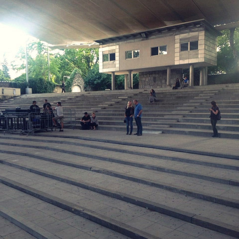 Spomenula sam da smo parkirale pokraj Križanki. Križanke slove kao jedan od boljih koncertnih prostora. Oni koji su bili, kažu čak da je i najbolji. Prostor na otvorenom, ali s obzirom da je natkriven, zaštićen je od bilo kakvog oblika (vremenskih) nepogoda. Nije zagušljivo, kako znaju biti koncertni prostori, zraka ima, a opet, nisi na vjetrometini (ilitiga, propuhu - hrvatskom vjetru smrti i uzročnikom svih bolesti i smrti). Gdje god staneš, vidiš. Gdje god staneš, čuješ. Savršena kombinacija svega. Prolazeći pokraj, osjećaš kako kroz tebe prolaze trnci uzbuđenja. Još malo, još malo!